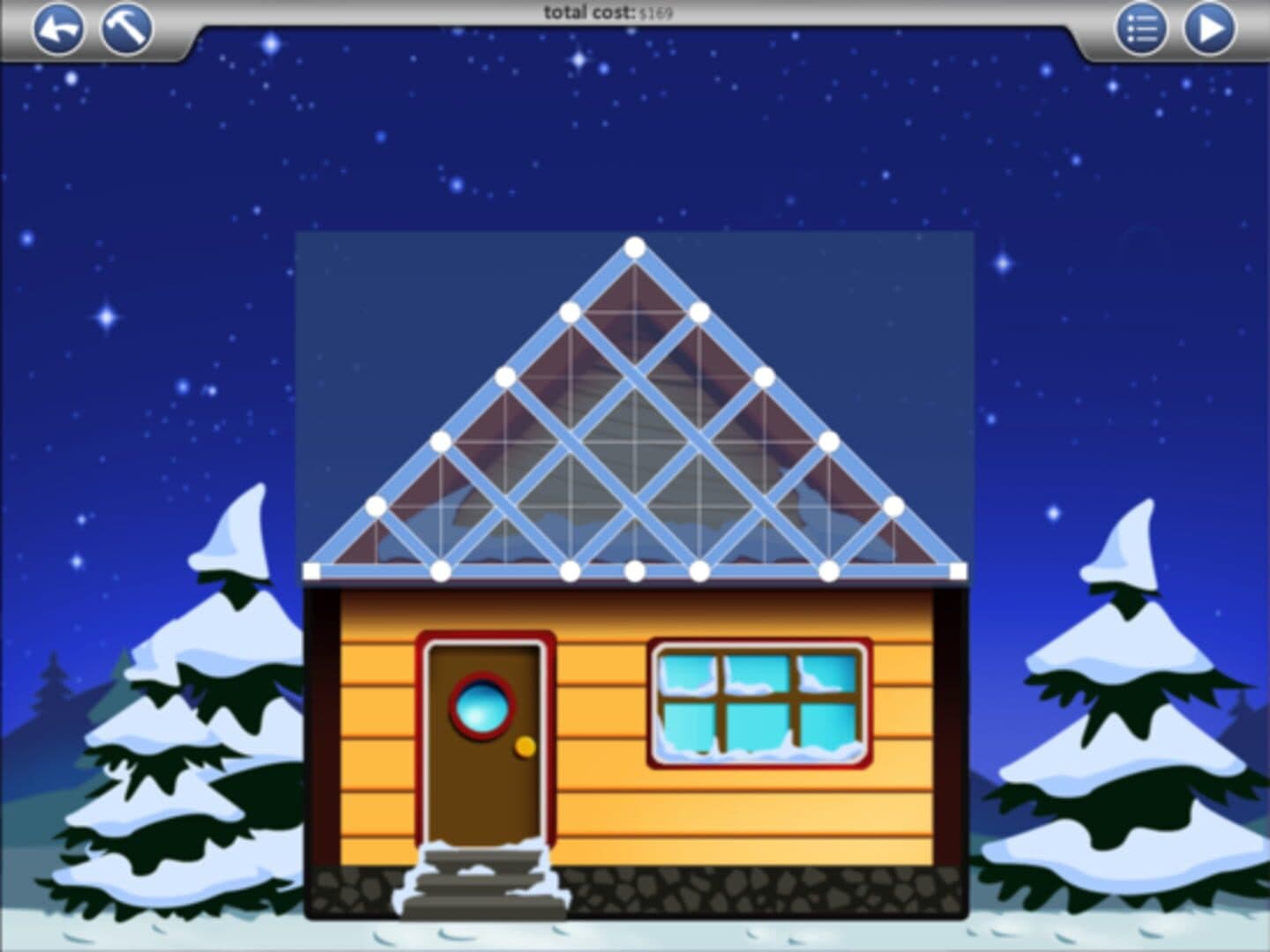 SimplePhysics lets you design complex structures for everything from tree houses to ferris wheels and then simulates your design with a sophisticated physics engine. A wise person once said: "An engineer is someone who can do for a dime what any fool can do for a dollar." In SimplePhysics, your design must not only be strong enough, it must be cheap enough to win. Create your design in seconds with the blueprints editor. If you make a mistake, simply tap the Undo button. Zoom in and out by pinching the screen and pan the view using a two finger drag. While testing, you can see how the strain is distributed across your design. Areas that are under immense strain are colored bright red, while other areas are colored green. This allows you to find and fix problem areas in your design. The finger test lets you use your finger to push and pull on your design. You can use this with pinpoint accuracy, or you can just smash your design to smithereens. The finger test has an explosive new twist. You can now create explosions by tapping the screen for ultimate annihilation. The newly added Bomb Shack level includes a dummy with full support for ragdoll physics. Throw him around, blow him up, and smash him against your design. The slow motion feature lets you slow things down so you can see how your design is failing, and it is also incredibly fun to watch explosions destroying your design in slow motion. Features * Realistic physics simulation * Ragdoll physics * Slow motion mode * Stress display shows problem areas in your design * Wide variety of levels! * Finger Test - smash your design to pieces, or blow it up with realistic explosions! * Save/Load designs * E-mail your blueprints to your friends * Universal support for the iPad