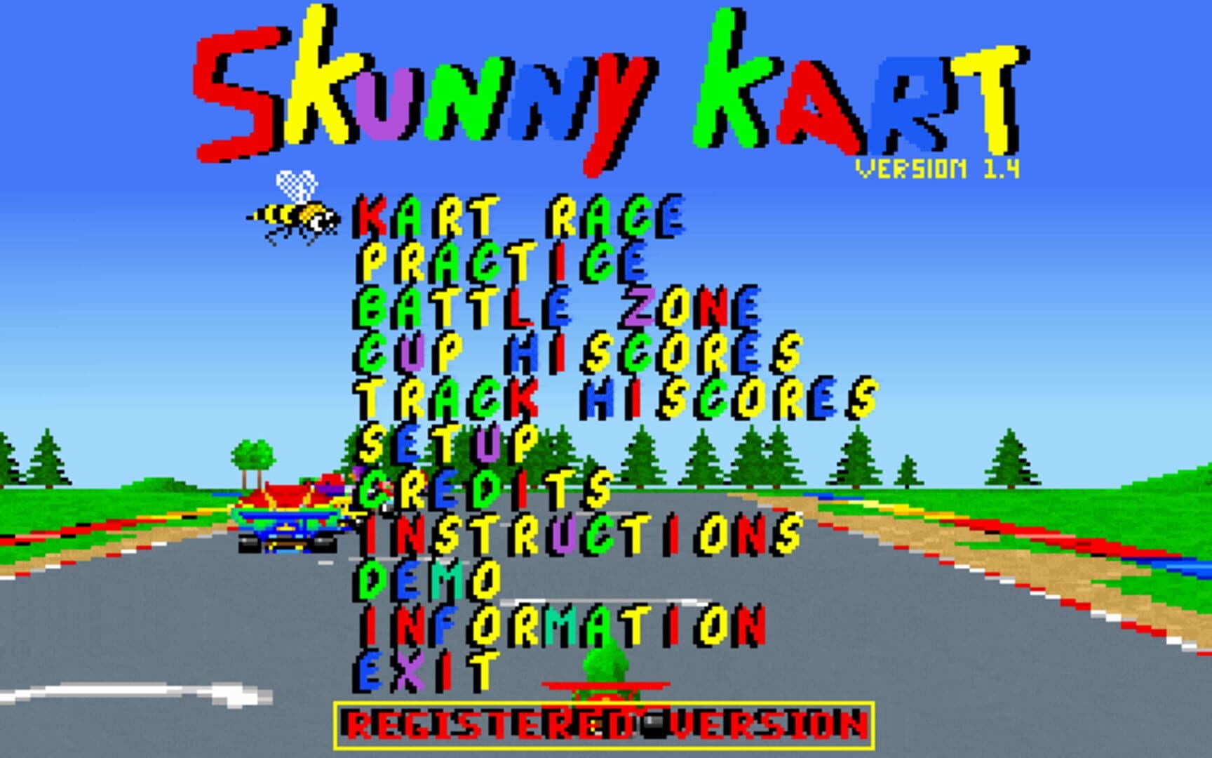 Skunny Kart plays much like Mario Kart for the SNES. The player races around the track trying to finish the race in first place. Along the way there are traps scattered around the tracks as well as some power ups. There are many sound effects used throughout Skunny Kart that have been taken from other licensed properties including: The Terminator, Bugs Bunny, and the Simpsons.