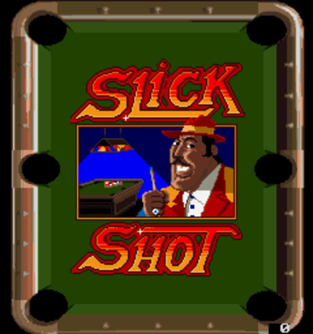Slick Shot is a 1990 billiard arcade game developed and produced by Grand Products. Players choose one of two billiard games: Slickshot or 9 ball. Using a real cue stick and ball on a small pool table surface, a player must shoot the ball into the game cabinet to simulate the shot on the video screen. Infrared sensors on the table slate calculate the speed and direction the ball is traveling.