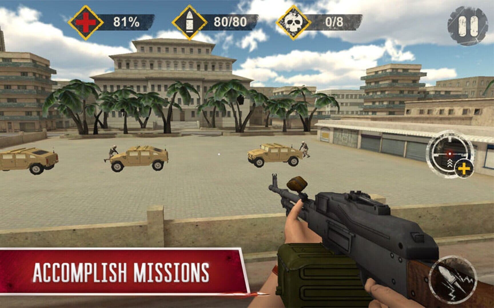 You are an experienced sniper in the secret terrorists base. All the most dangerous criminals hide there and plot evil plans. Your mission is to destroy the base and all the criminals.