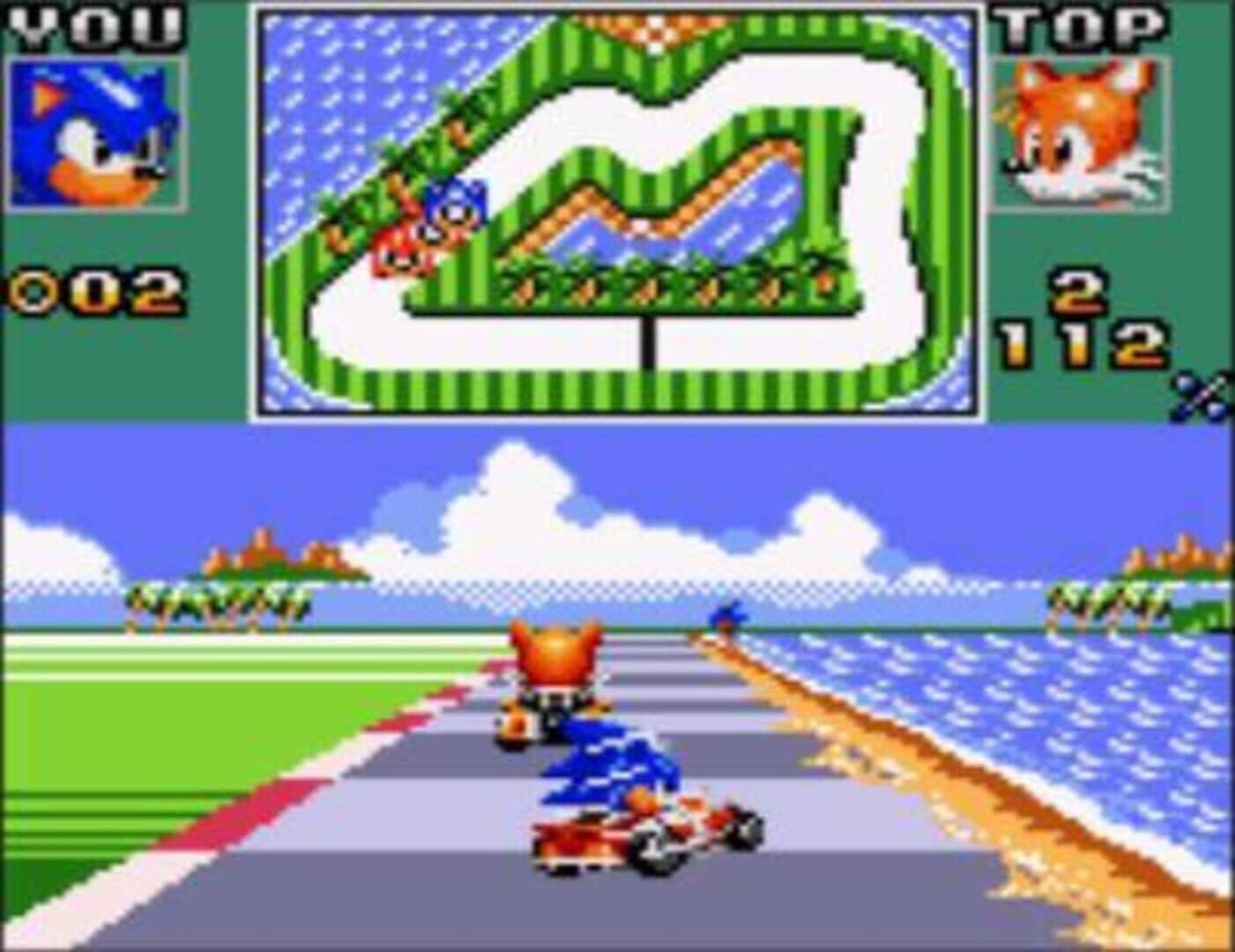 Sonic Drift is a racing game whose gameplay style and controls are heavily based on Sega's arcade game Out Run. Here, the players race around a race course against the other three characters for a top position in the race. The game's single player mode is Chaos GP, where the player's goal is to win three different circuits (green, yellow and red). Each circuit is made of six different race courses that the player is taken through in succession. Each race course is composed of a circuit which needs to be completed thrice. The playable characters have rather simple controls, their basic actions being accelerating to move forward, breaking, and moving left or right on the tracks. In tight corners, the player can break while turning in a specific direction, allowing them to drift through the corners. If the player overuses this method though, the playable character starts spinning out of control. Should the player move outside the race tracks, the racer's acceleration will decreases noticeably on the rough terrain. The race track's sidelines also have obstacles that will stop the player altogether if the playable characters crash into them. The player can as well collect Rings along the race tracks to perform special moves unique to each character.