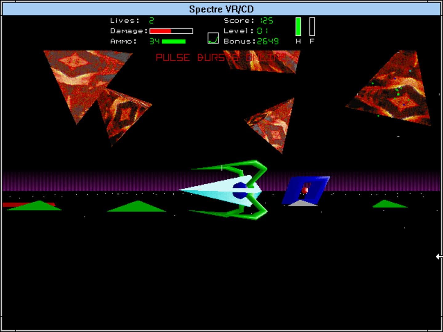 Spectre VR is a frag-fest that pays homage to the arcade classic Battlezone. This is the second sequel to Spectre, following Spectre Supreme. New features include texture-mapped graphics and the (limited) ability to fly.