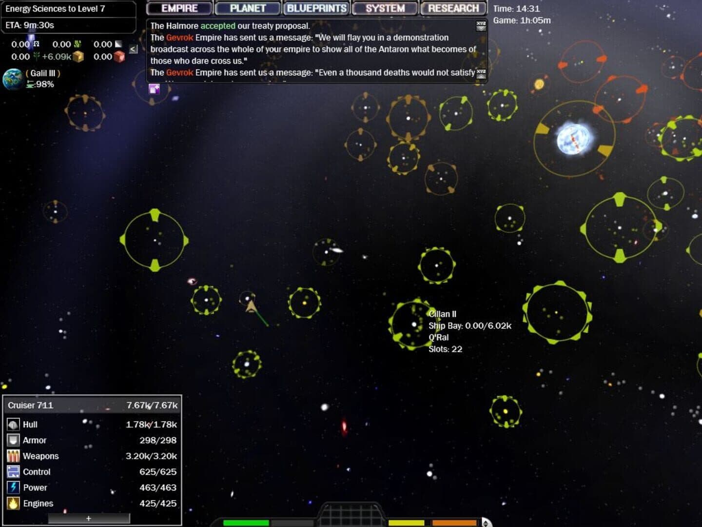 Star Ruler is a large scale, real-time grand strategy set in space. Design, build, and take control of potentially thousands of ships, and expand the reach of your empire across the entire galaxy. Research new technologies, capture enemy vessels, and conquer enemy planets on your path to galactic domination. Chat with other players at any time to discuss strategies or arrange multiplayer games. And if that isn't enough, you can modify the game in nearly any way you see fit, or download mods made by others.