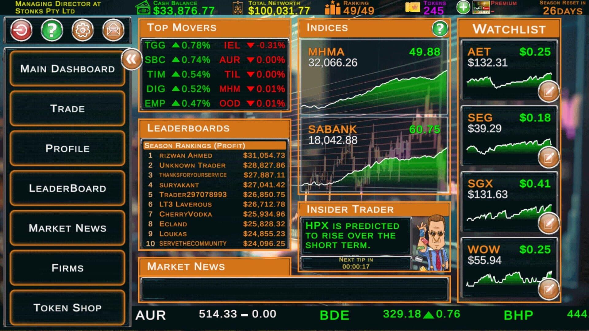 A competitive multiplayer real-time stock market investment game where players compete globally to achieve maximum investment returns. Trade live stocks in a simulated economy and manage your portfolio in a real-time virtual stock exchange.