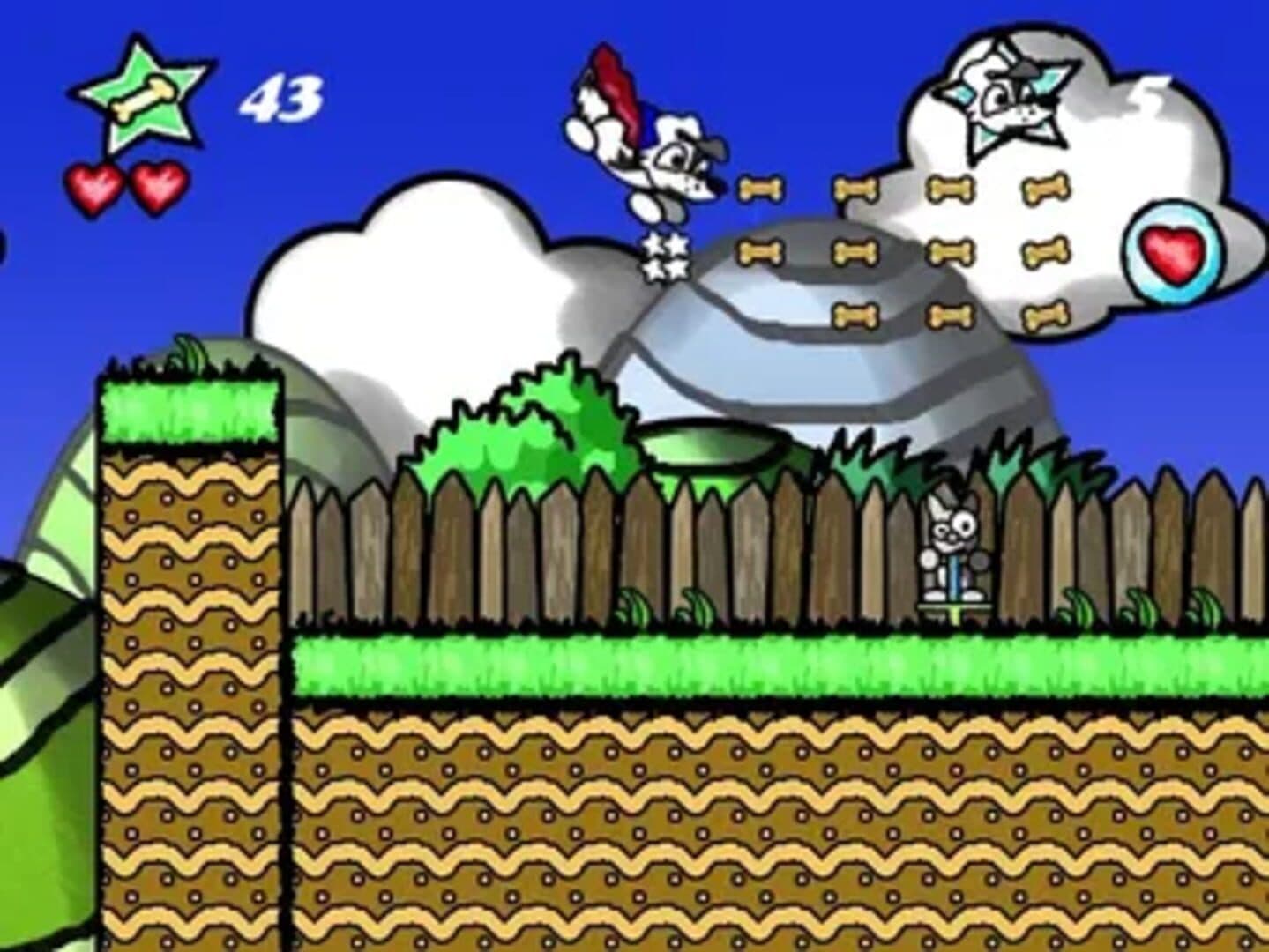 The "Stunt Dog Adventure" is a thrilling retro inspired 2D side scrolling action game. Collect bones, solve puzzles, swim and fly to rescue a team of kidnapped All-Star Stunt Dogs!