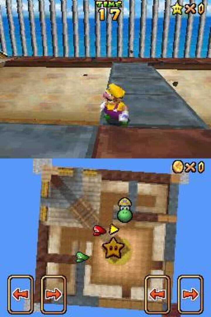 Super Mario 64, the classic 3D platformer for the Nintendo 64, arrives on the Nintendo DS with all-new features that take advantage of the portable system's dual screens, touch screen, and wireless multiplayer capability. Like the original game, Super Mario 64 DS challenges you to find all the power stars hidden throughout the royal castle in the effort to free Peach imprisoned inside the castle. This time, you can play as Mario, Luigi, Wario, and Yoshi, each of whom has unique abilities. Overcome the challenges on your own or battle up to three of your friends in the multiplayer modes.