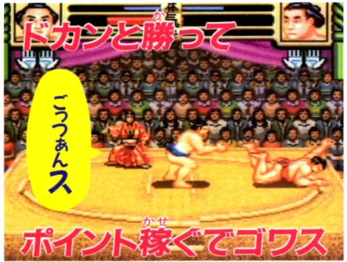 Takara-hai Oozumou Eisei Basho is a port of Oozumou Tamashii for the Satellaview which had SoundLink support. It is a sumo fighting game, which was accompanied by a live broadcast. The gameplay is divided into two parts; the player does the training in the first half, while real matches begin in the second half. Scores are counted according to the kinds of used techniques. A voice guide is provided by Kiyoko Taniguchi.