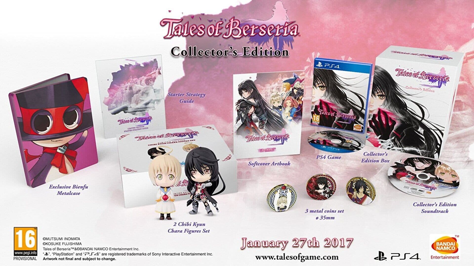 Includes Exclusive Bienfu Metalcase, 2 Chibi Kyun Chara Figures Set, Starter Strategy Guide, Softcover Artbook, 3 Metal Coins Set, Collector's Edition Box, Collector's Edition Soundtrack, PS4 Game