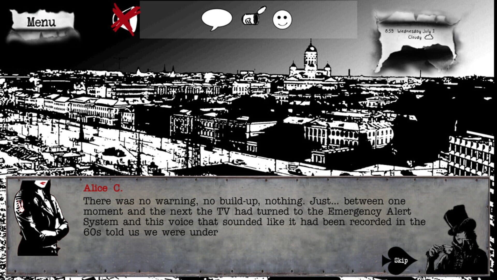 In The Bottom of the Well, you play as Alice who has just had an unsettingly life-like dream about the end of the world. She retells her experience to her friend in a huge, branching narrative. Although a single play-through might take as little as 20 minutes, experiencing all the possible paths Alice can take through the ruins of her city will take you many hours.