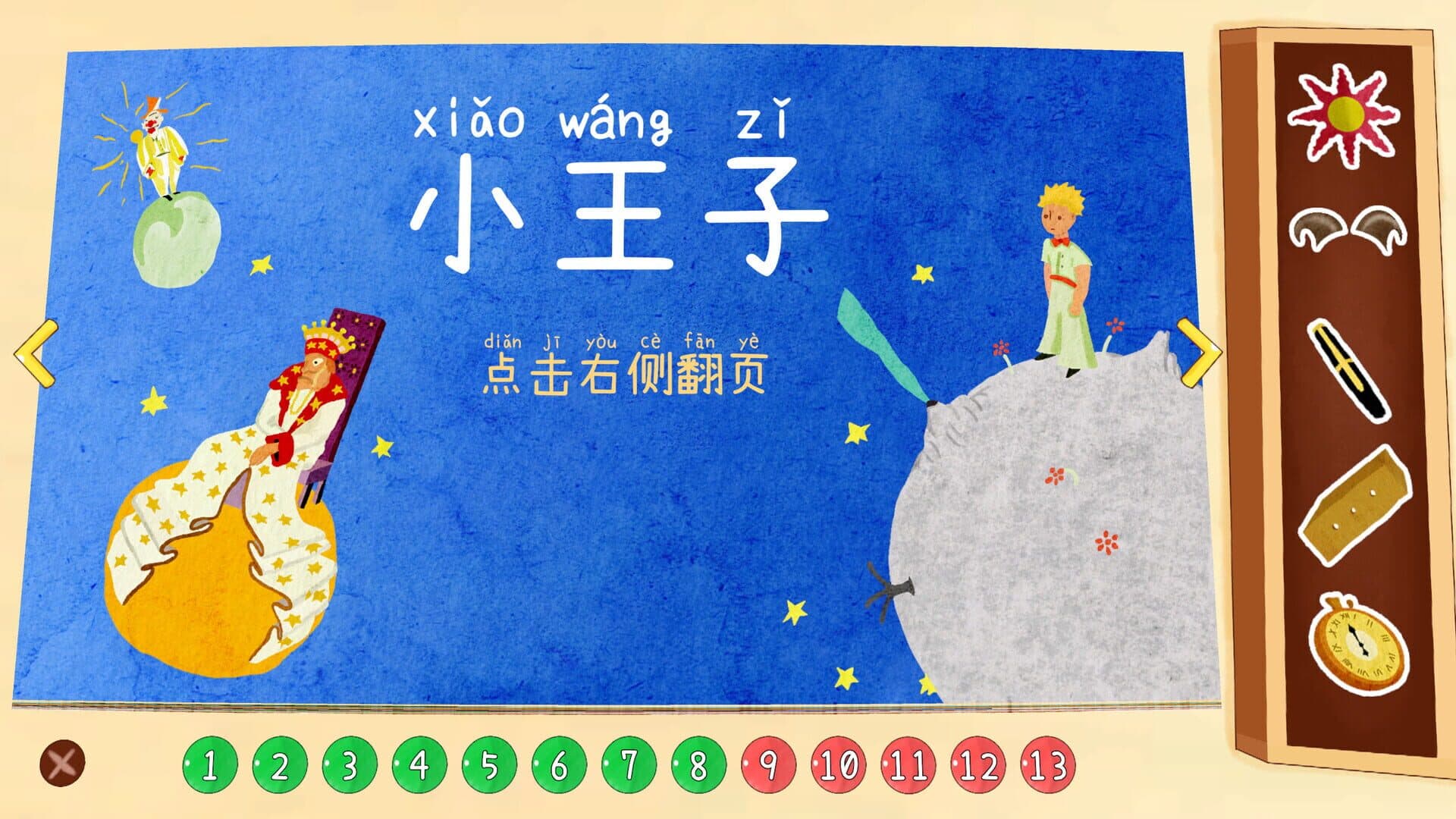 A puzzle game in a watercolor style, where players need to complete puzzles by clicking or dragging with the mouse. The presentation format mimics children's picture books, with different scenes displayed in a paged format. Take you back to the story of the classic work "The Little Prince"!