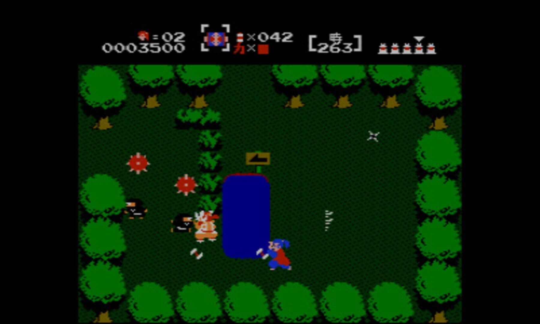 Restore peace to a land that has been overridden by evil! One stormy night in feudal Japan, a mysterious force begins to take control over Murasame Castle and its lands. Each lord in four neighboring castles has taken possession of a dark sphere of power, allowing them to summon ninja armies and monsters that wreak havoc in the villages. Takamaru, a brave and young samurai apprentice, has been sent to investigate. He must infiltrate all four castles and defeat the lords before making his way to Murasame Castle. Use sword and shuriken attacks against the swarms of enemies, and unlock the secret behind the source of evil. The game was at first released exclusively for the Famicom in Japan, but it would come to the rest of the world for the first time in 2013 as part of the 3DS virtual console, as well as for Nintendo Switch Online in 2023.