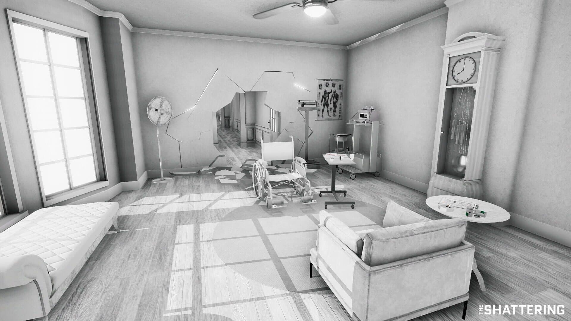 The Shattering is a first-person, story-driven, psychological thriller that takes place in the pristine white aesthetic of protagonist John Evans' own dream. Players must piece together the fragments of the past and present, following the voice of the 'Doctor' as he guides them deeper into John’s mind. Players will experience the key moments of John's life that have defined and shaped him - they will be tasked with discovering the truth, shattering the lies and, ultimately, finding out what happened to him... and to remember her name.