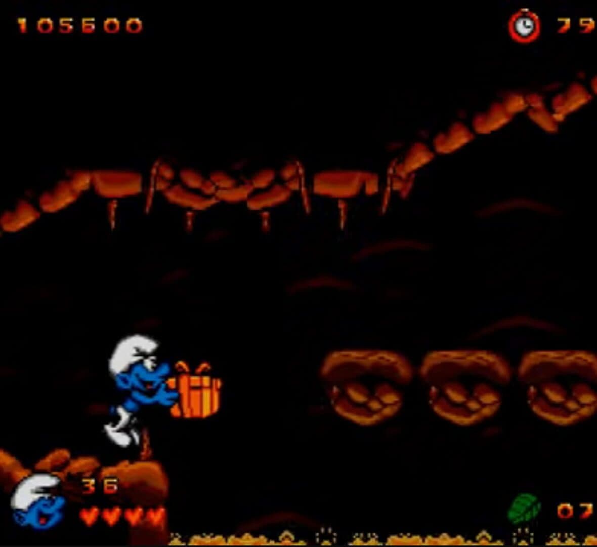 Smurf to the rescue! Gargamel has already captured 4 Smurfs, Jocky Smurf, Greedy Smurf, Brainy Smurf and Smurfette. To free them you will have to smurf the Angry Smurfs and BUZZ flies before smurfing the mountain by sled, then smurfing the maze mine galleries, smurfing on the back of a stork to smurf Azrael and finally smurf Gargamel from his mansion! Good Smurf!