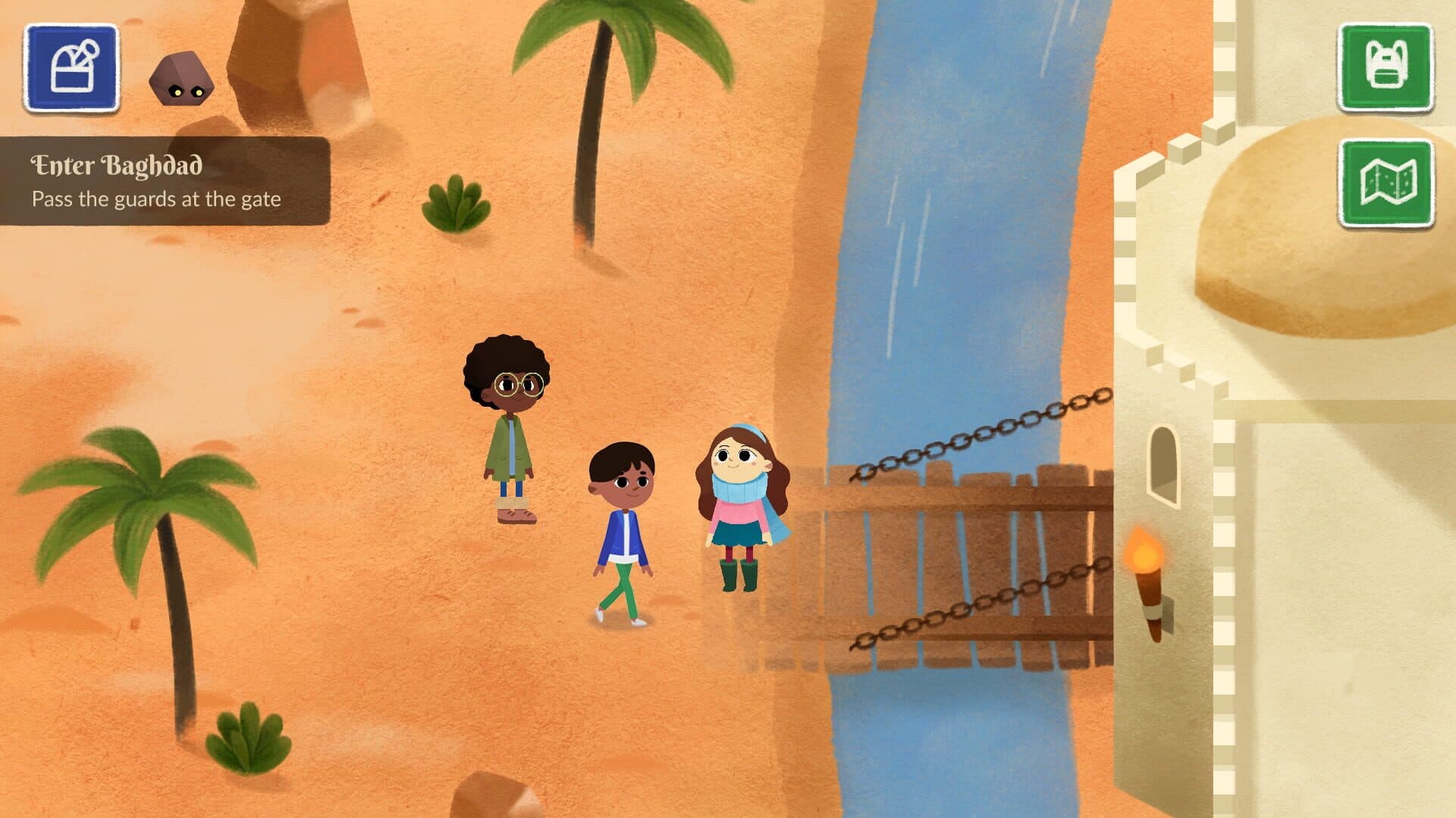 It’s 2050 and your first day at the astounding Aqli Academy for Gifted Children where you’ll meet your new brainiac buddies Khalid, Layla, Abdullah, and Aysha. They need YOUR help investigating a mysterious machine that unexpectedly unleashes a crash course in history! But watch out, there are dastardly, diabolical villains trying to change the course of time and the fate of history is at stake! The Time Hoppers will need to stop the machinations of the mad alchemist, Dr. Fasid, and his maniacal minions! The Time Hoppers are prepared with technological tools and futuristic techniques to overcome whatever they encounter! Wander across wild desert wastes and whimsical cities in the wondrous ancient worlds waiting for you! Curiosity is richly rewarded with troves of treasure and nuggets of knowledge.