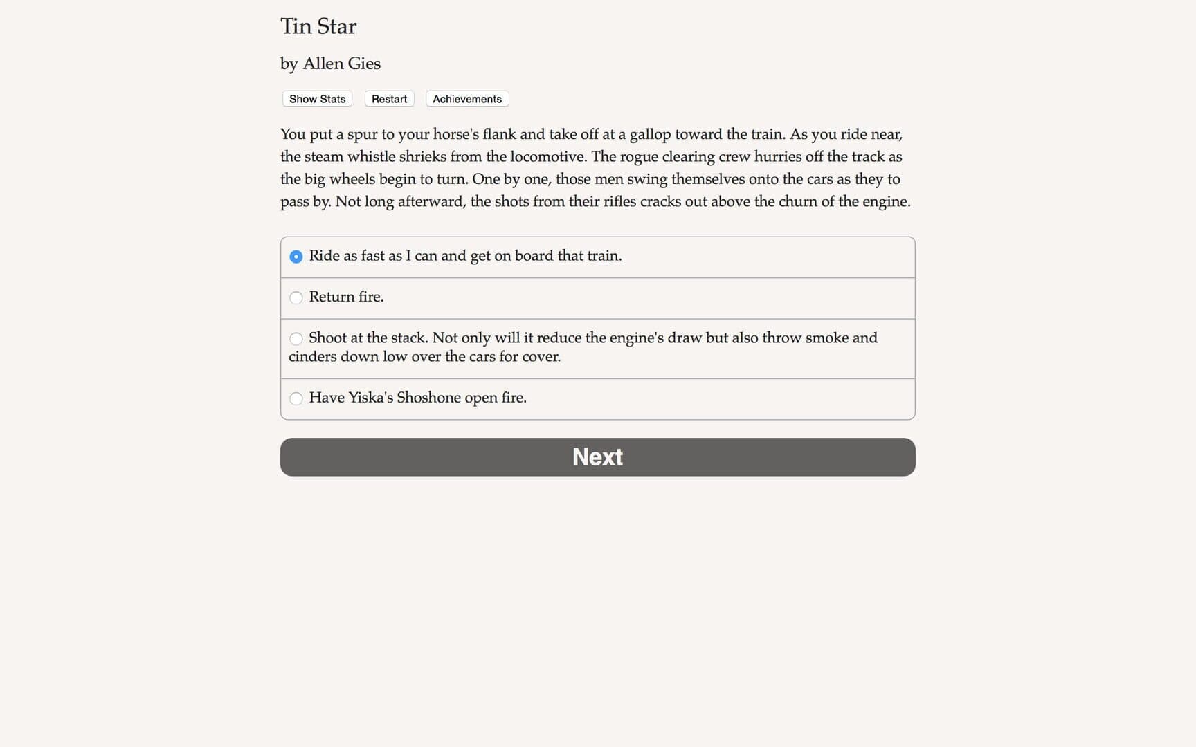 Ride out into the Old West as a U.S. marshal in the biggest interactive novel ever made! Confront outlaws, find romance, defy the elements, and craft an enduring legend as you uncover a conspiracy whose deadly web stretches from San Francisco to New York City.