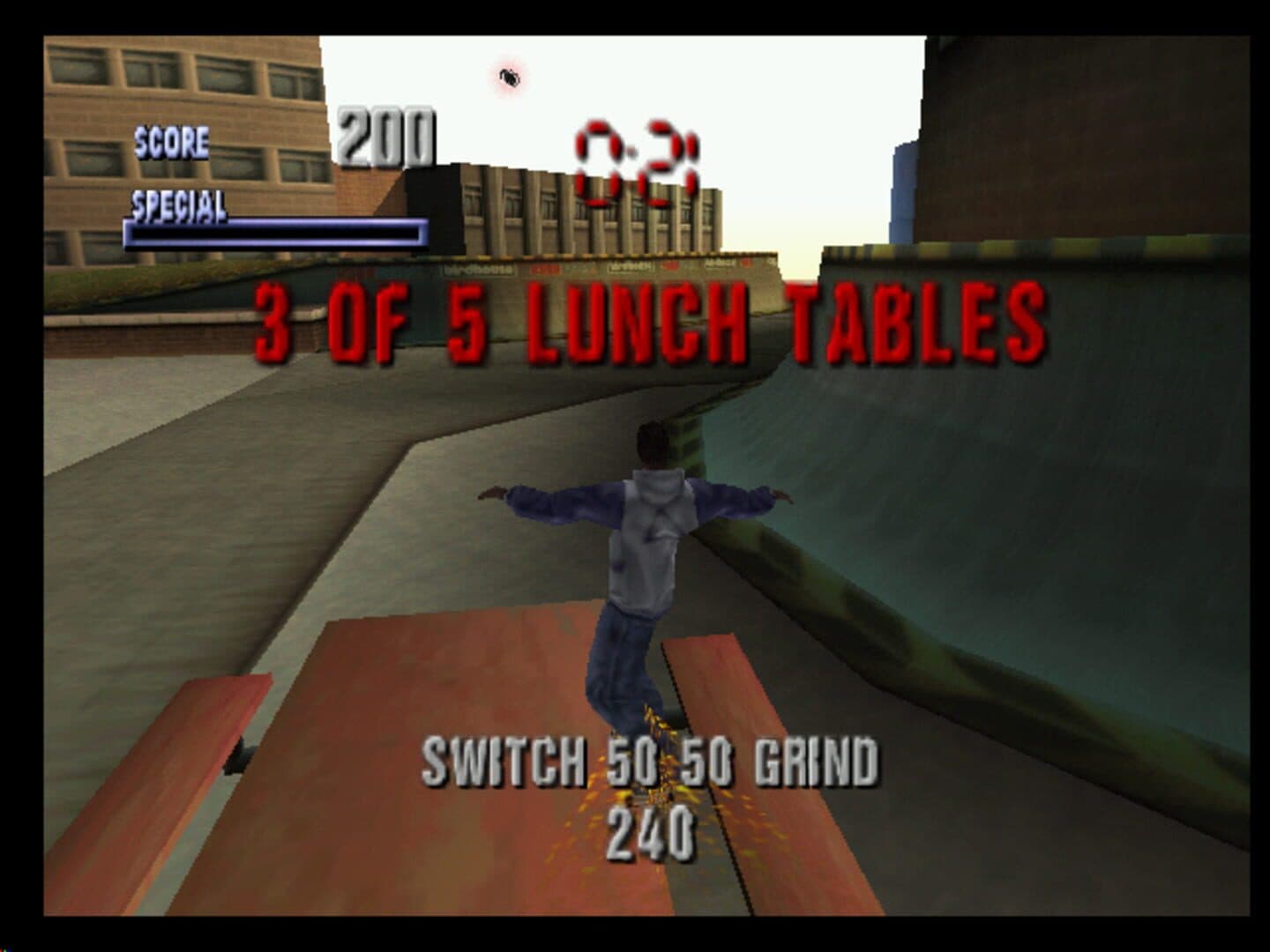Tony Hawk's Pro Skater is a skateboarding simulation in which you control a famous skate star around 3D environments. Each game area contains a plethora of objects like ramps, rails, and half-pipes which can be used to perform tricks. Each trick you perform earns you more points for your score. The game is divided into two types of levels. In the first, you skate around locations like a mall, a city street, or a warehouse. In each of these areas, there are 5 goals to complete. Some goals involve obtaining a high score, others smashing objects and some collecting objects. For every goal you complete, you earn a videotape. By collecting enough videotapes, you unlock levels and skateboards for you to use. There are 6 levels like this. The second type of level is competition. You get to make 3 timed runs through a skate park and attempt to get the highest score possible. If you do well enough, you will beat the scores of the computer-controlled skaters and win a medal. There are 3 levels like this. There are nine real-life pro skaters you can choose to play as, including Tony Hawk himself. Each skater has their own signature moves that earn you big points if pulled off successfully.
