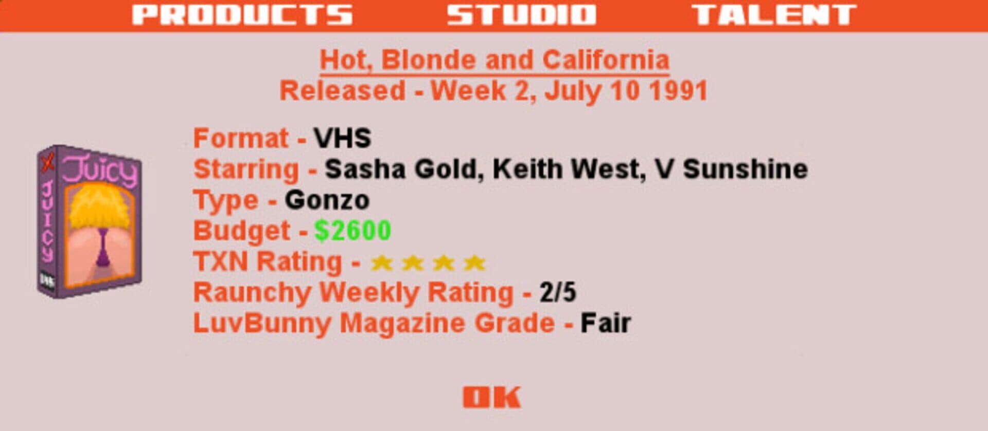 Triple X Tycoon is a simulation game in which the player explores the world of adult entertainment from the inside.