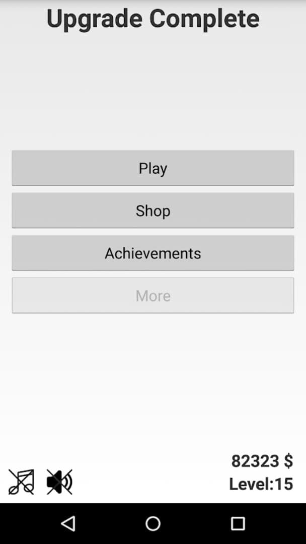Upgrade the Game is a game where you can upgrade everything! From graphics,sound, music, menus, to your spaceship....EVERYTHING! Start from a poor game until you achieve the game complete!, Enjoy upgrading all parts of the game, you will need money that you get killing enemies spaceships but, be careful! If they pass the last line of defense you will lose the game! At the level 5 you will engage the Alien Commander Kill the enemies with your shoots and two skills: -Freeze the time -Invoke your image mirror Start from the simply of pixel to the graphics of the spaceships! A casual game for all publics where you can have fun for a time doin upgrades. Features: -Upgrade the interface including main menu, shop menu and tutorial -Upgrade the graphics of your ship , enemy ships, shoots, background and boss -Upgrade the shields,move speed, fire attack speed, speed of coin, the amount of coin and much more -Upgrade the skills,the times you can use it and how many time it is active -Achievements of all types -Decrease the chance of boss appear in the end of the round