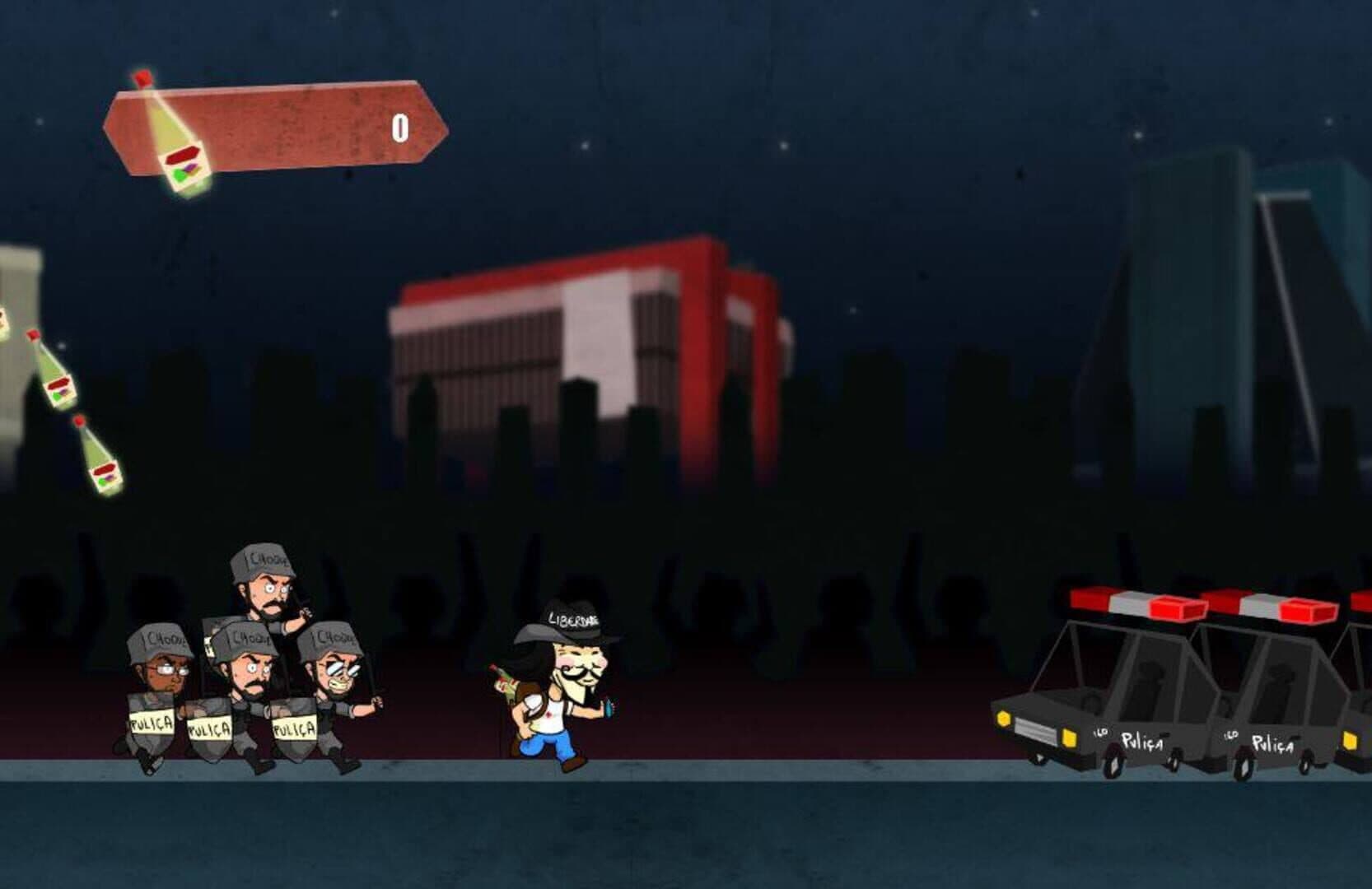 V de Vinagre was a web browser endless runner based on an event during the 2013 protests in Brazil, where more than 60 protesters were arrested in June for carrying vinegar as a home remedy against the tear gas and pepper spray used by police.