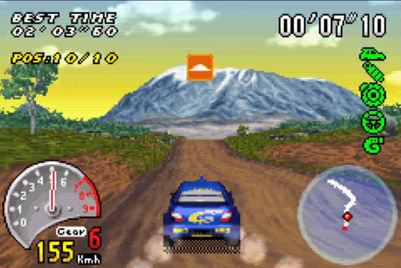 V-Rally 3 for the Game Boy Advance adapts the console game of the same name to the handheld platform, offering its own selection of cars, tracks, modes and a platform-appropriate graphics engine.