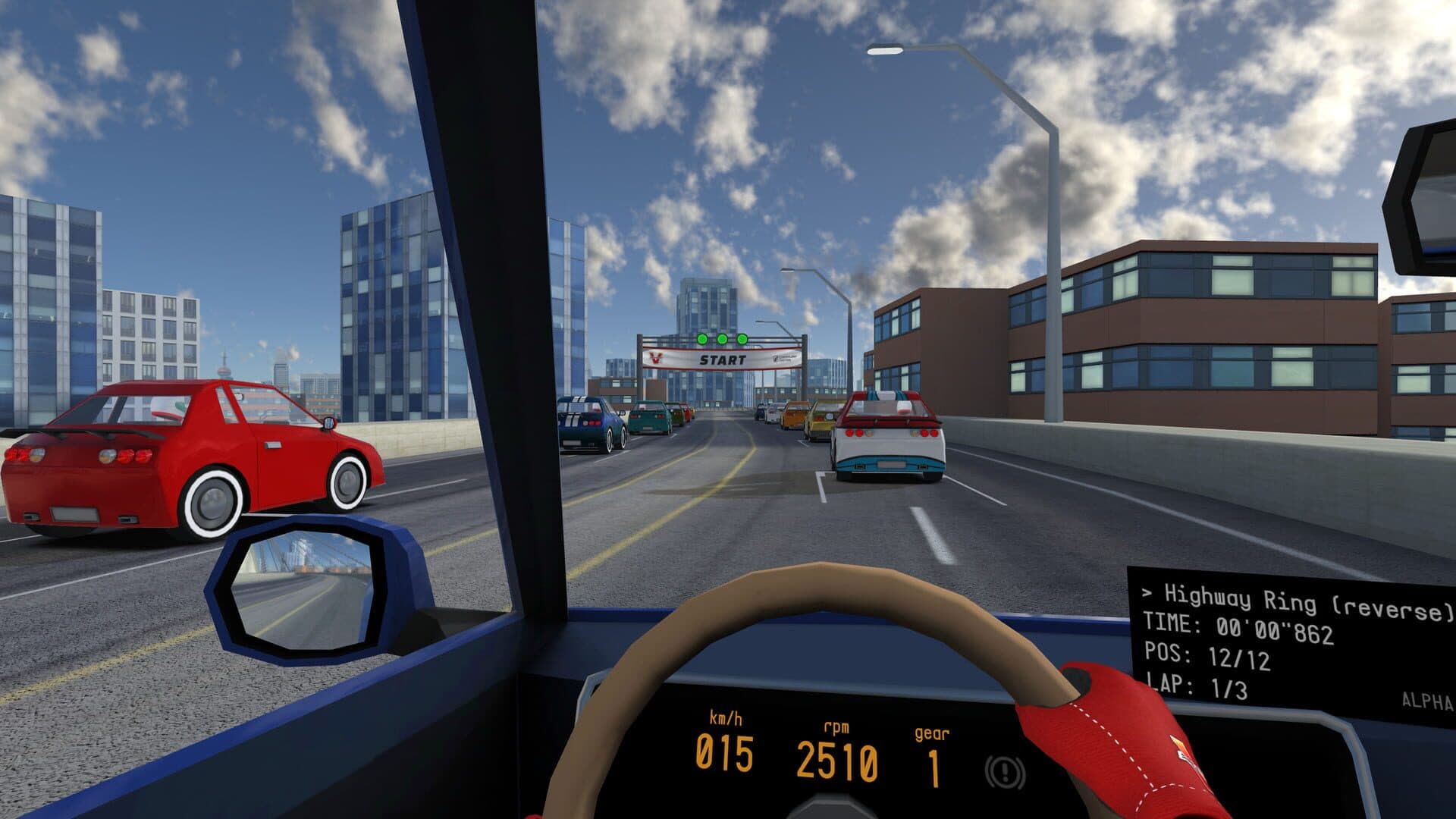 V-Speedway is an introductory VR arcade racing game with simple physics, essential features and full interactive controls. The game features Single Race, Time Attack with online leaderboards, and Free Ride modes.