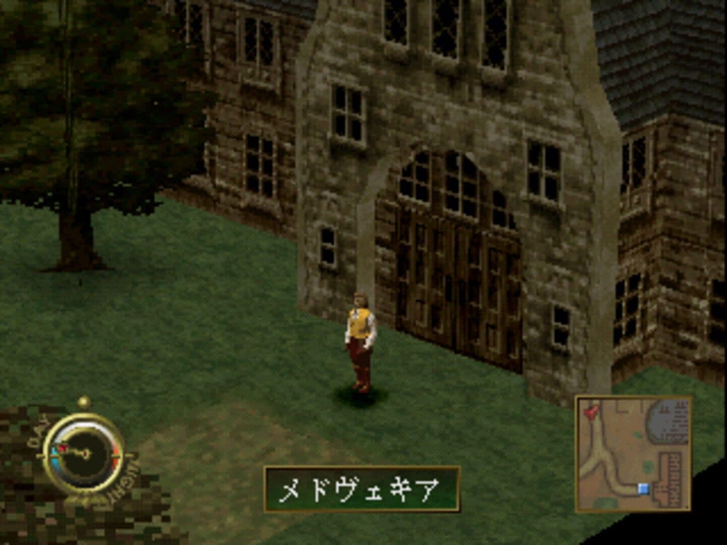 Vampir Kyuuketsuki Densetsu (Vampir Tales of the Bloodsuckers) is a RPG with an isometric view in which the player controls a vampire that is in a small town in the 19th century. The game is divided into 2 different parts: During the days the player's character (a young vampire called Christopher) have to talk to the people of the town and gain his confidence, in the nights the character have to suck their blood. The goal of the game is to destroy Duran, but in the game there are also other enemies like the vampire hunters (Van Hellsing, Harker, and others). During the nights the player characters can transform himself into 4 different forms: vampire, fog, wolf & bat.