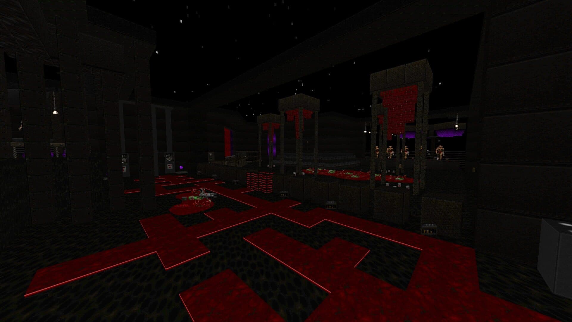 This is a collaborative set of 13 Boom-compatible (-cl9) levels made from and inspired by Stardate 20x7. Proto-slaughter, tight skirmishes, casual combat, and various puzzlery await, all splotched with purple for the eyes to feast on. This is a mix of short void vignettes and extensive gothic/cavernous menageries, so maybe there's something for everyone here. This set is comparable to late Sunlust, Fractured Worlds, and its very inspiration. Difficulty settings have been taken into account, and we've done our best to make HNTR/HMP enjoyable experiences while still being somewhat challenging.