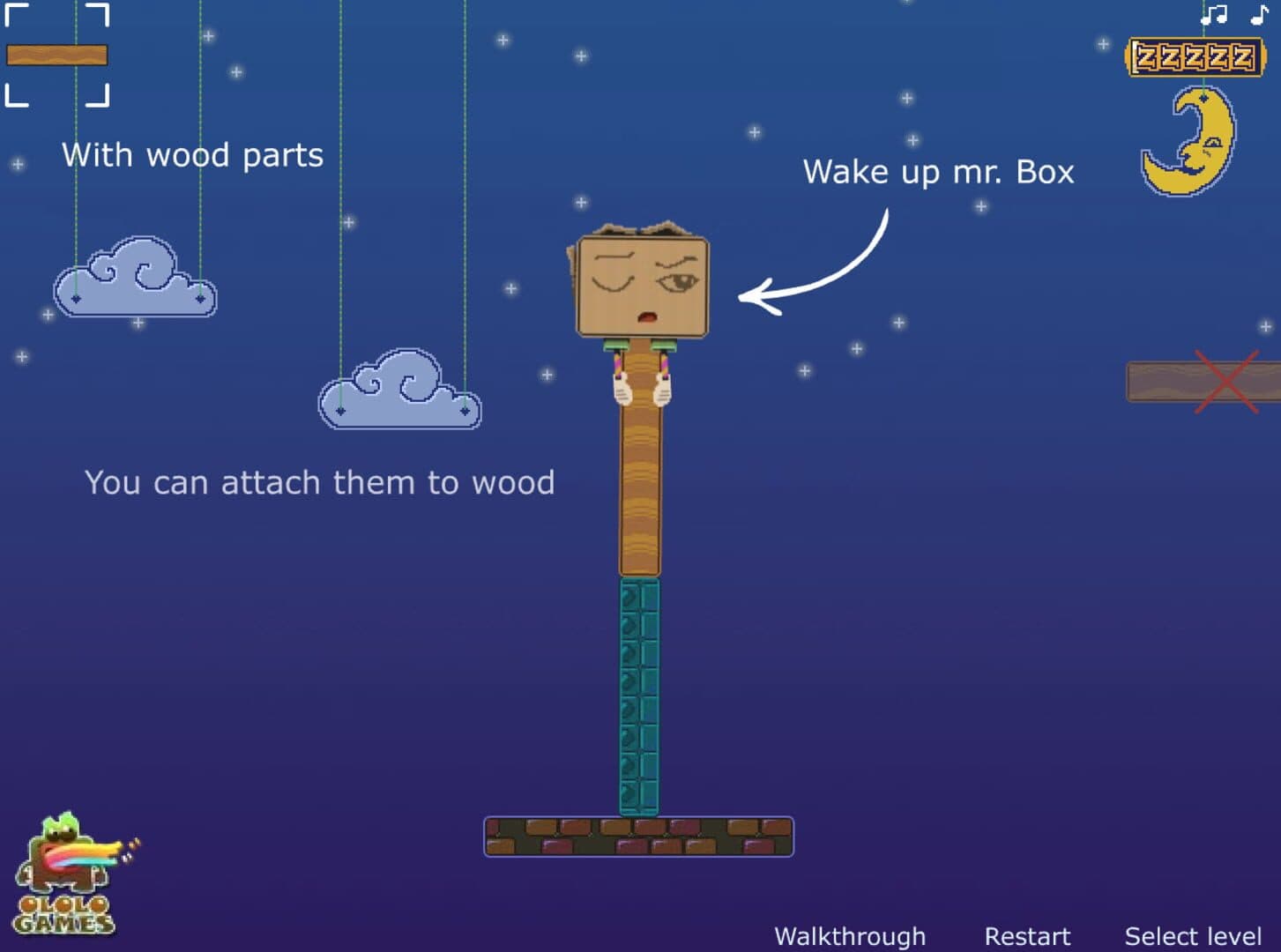 Mr. Box sleeps too much. Wake him up in this physic based puzzle game.