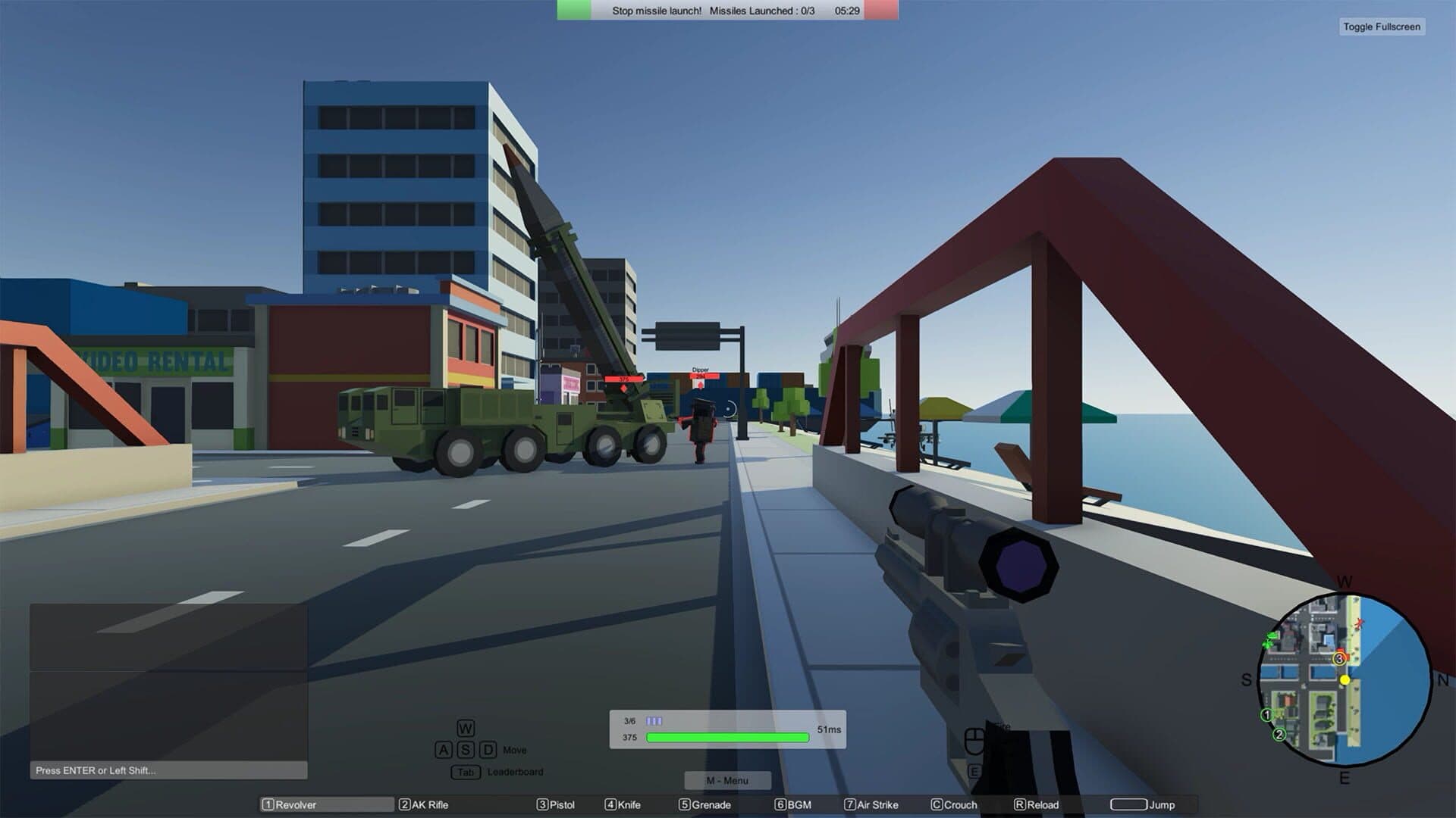 A Browser based multiplayer game where players can fight it out on foot, in APC's, tanks, or helicopters in large scale maps.