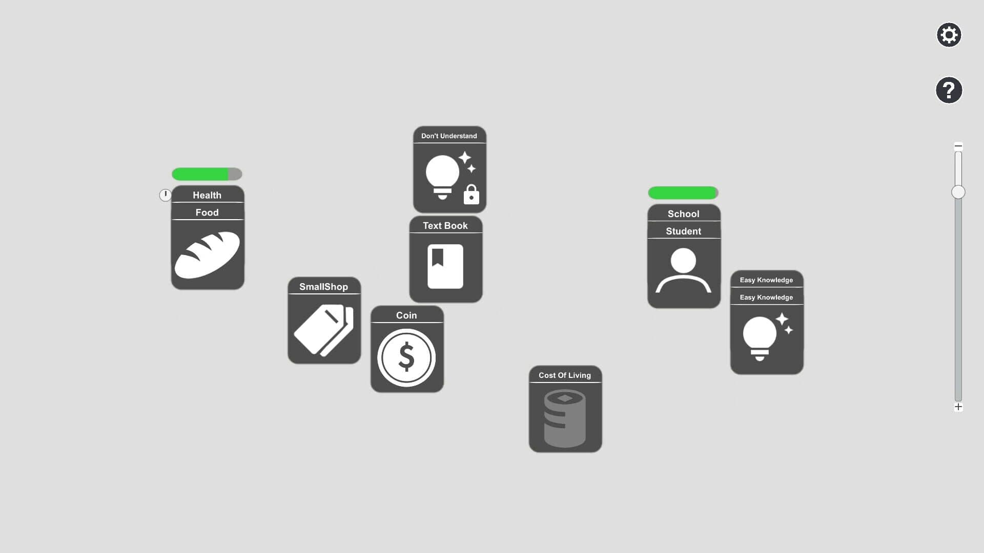 Withered Dream is a 2D story exploration game based on card stacking and limited-time operation. By modifying the stacking relationship between the cards, new cards can be generated and the story can be advanced. The game contains three stories: going to school, going to work, and being unemployed.