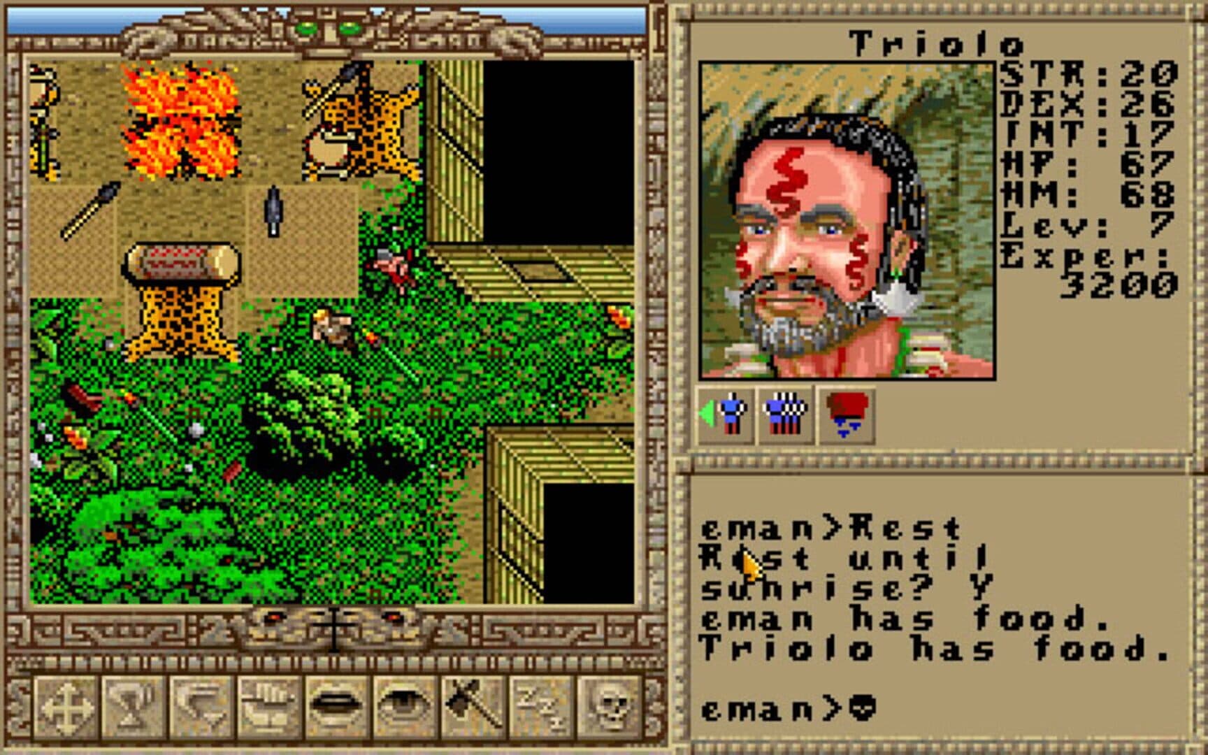 Savage Empire is Origin's first "Worlds of Ultima" release. It was made using basically the same engine as Ultima VI but with slightly different graphics. The game contains all of the elements of the other Ultimas, as well as some extra features that add to the experience. You are able to interact with the environment in a realistic manner... picking branches from trees, digging clay from a riverbank etc. Savage Empire also has a lot more character interaction than the previous Ultimas. Characters will jump into conversations whenever they feel they have something pertinent to add.