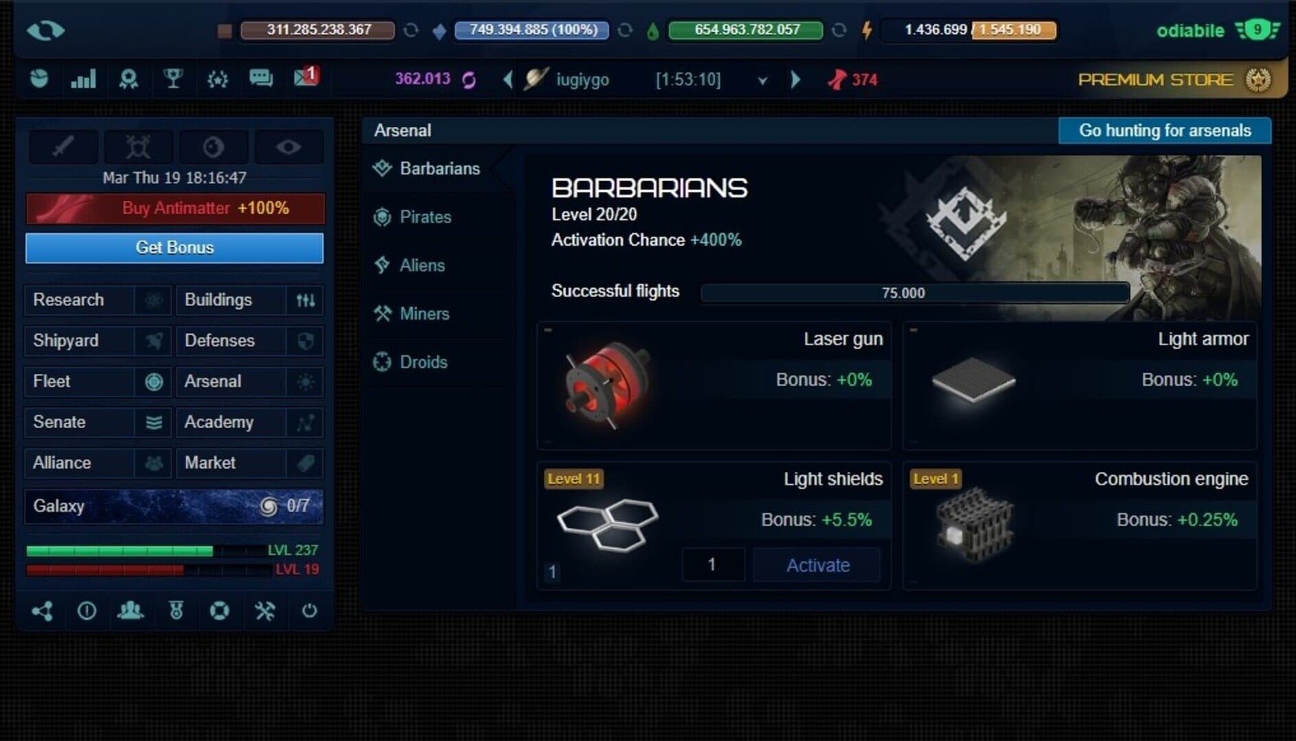 Xterium is a space strategy game in real time. Research technologies with each giving various advantages. Start a computer technology to run a mission fleet. Weapons technology helps you to survive. Recruit a geologist to support the development of resources. You can also hire admiral, so you wouldn't lose control in battles. Expand the empire by constructing Metal Mine, Robot Factory, Solar Power plant, Shipyard, Research Lab, Deuterium Power Plant, and so on. You can have a clear review whether your empire is being spied. Increase your units to rise in the Hall of Fame. Collect achievements and create an alliance.