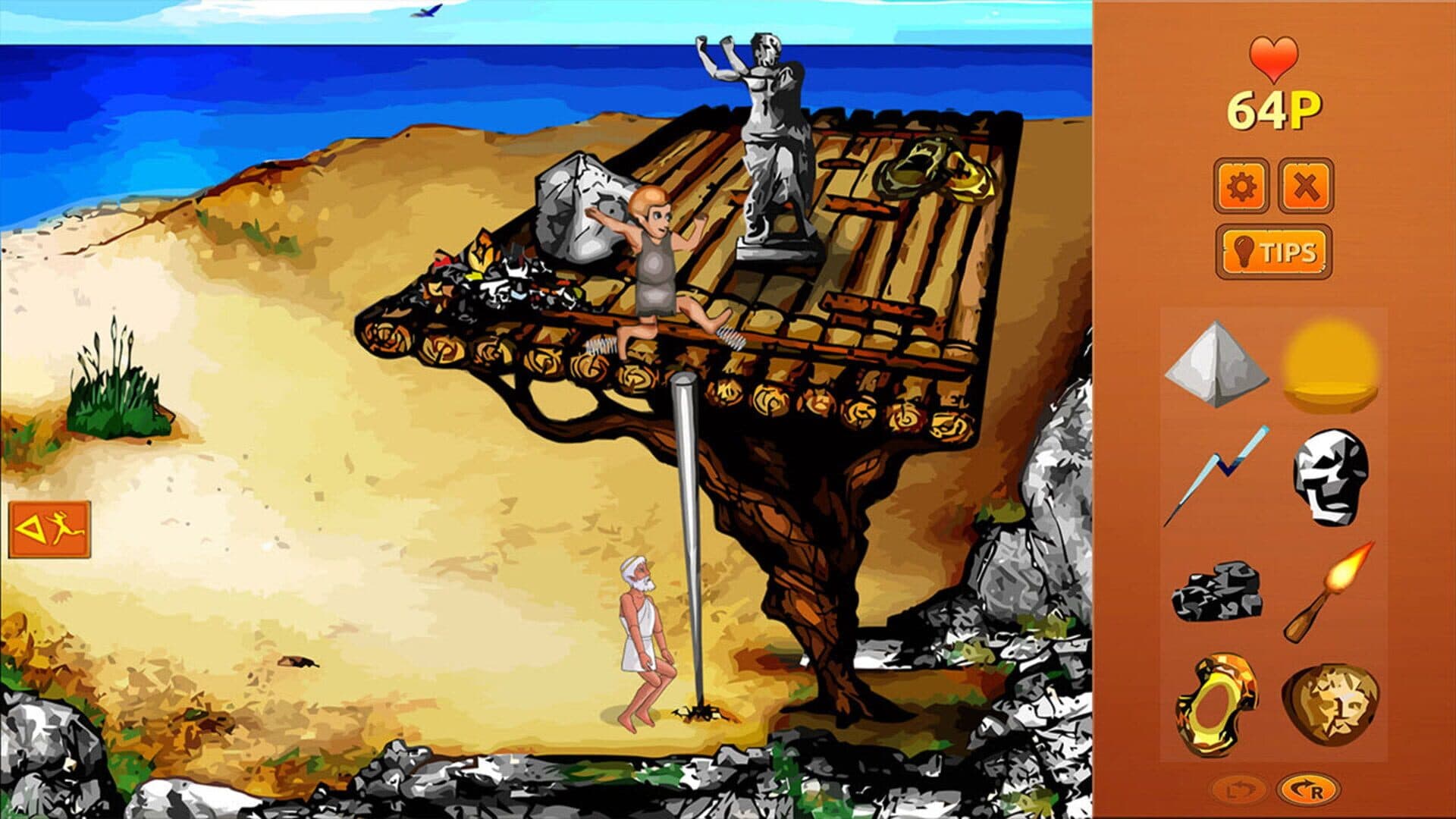 'Zeus Quests Remastered' is a silly point and click adventure game with light-hearted humour. It combines Greek Mythology with Sci-Fi in a twisted way! You control Zeus (Boss of Olympus) which is a wacky character. He tries to fix a time machine to save the planet from explosion. Everything happens in Greek mythology timeframe. The characters and dialogues are silly and translated into 6 languages. There is English Voice over in some cut scenes. We use Vector art, a unique cartoonish style. Zeus, the boss of Olympus is summoned back to earth by an ancient security mechanism. The story starts with Zeus flying his spaceship and landing it in the bottom of the Santorini Ocean. In Santorini he will interact with dozens of crazy characters and solve many smart puzzles. The game is big, full length. He will visit Oia, Akrotiri, Fira, Caldera, Volcano and many more places until he finally discovers his super weapon, the thunder and the time machine box. But even then the task is far from over, he will have to set sail to another cluster of Greek islands, Milos, Karpathos, Mykonos and Delos. There he has to find the scattered pieces of the time machine so that he can use it to save the planet. There he will even abduct Europe transformed into a bull (mythology) and take her to Minoan Crete in the Knossos timeframe. There he will enter the famous labyrinth of Knossos, go to Festos and find the missing pieces to complete the mission.